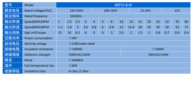 電機(jī)主要性能表 SPECIFICATION